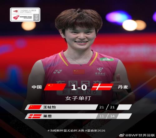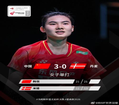 大比分橫掃!國羽50完勝丹麥隊,收獲2026尤伯杯小組賽兩連勝